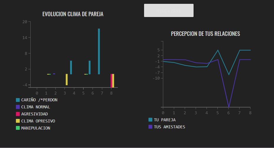 El resto de gráficas que ofrece la checkapp permite observar como cambia el clima de pareja en función de las relaciones que se establecen.